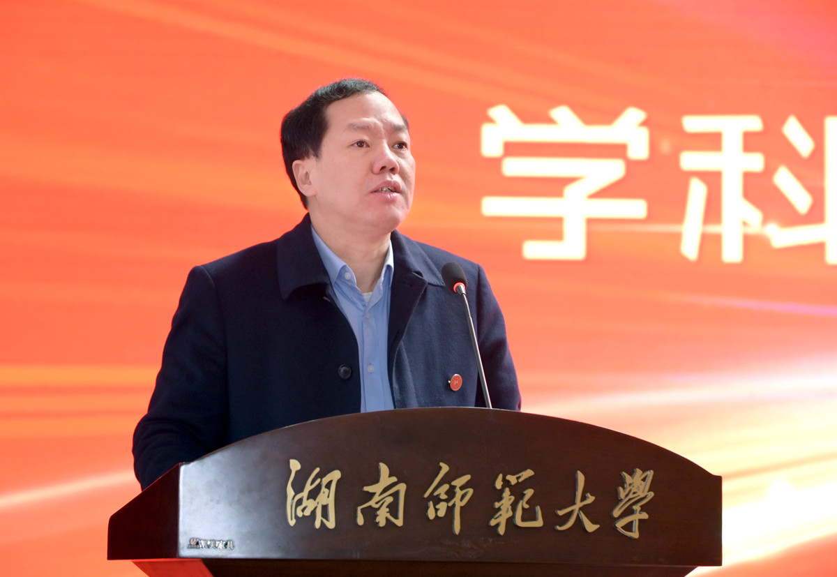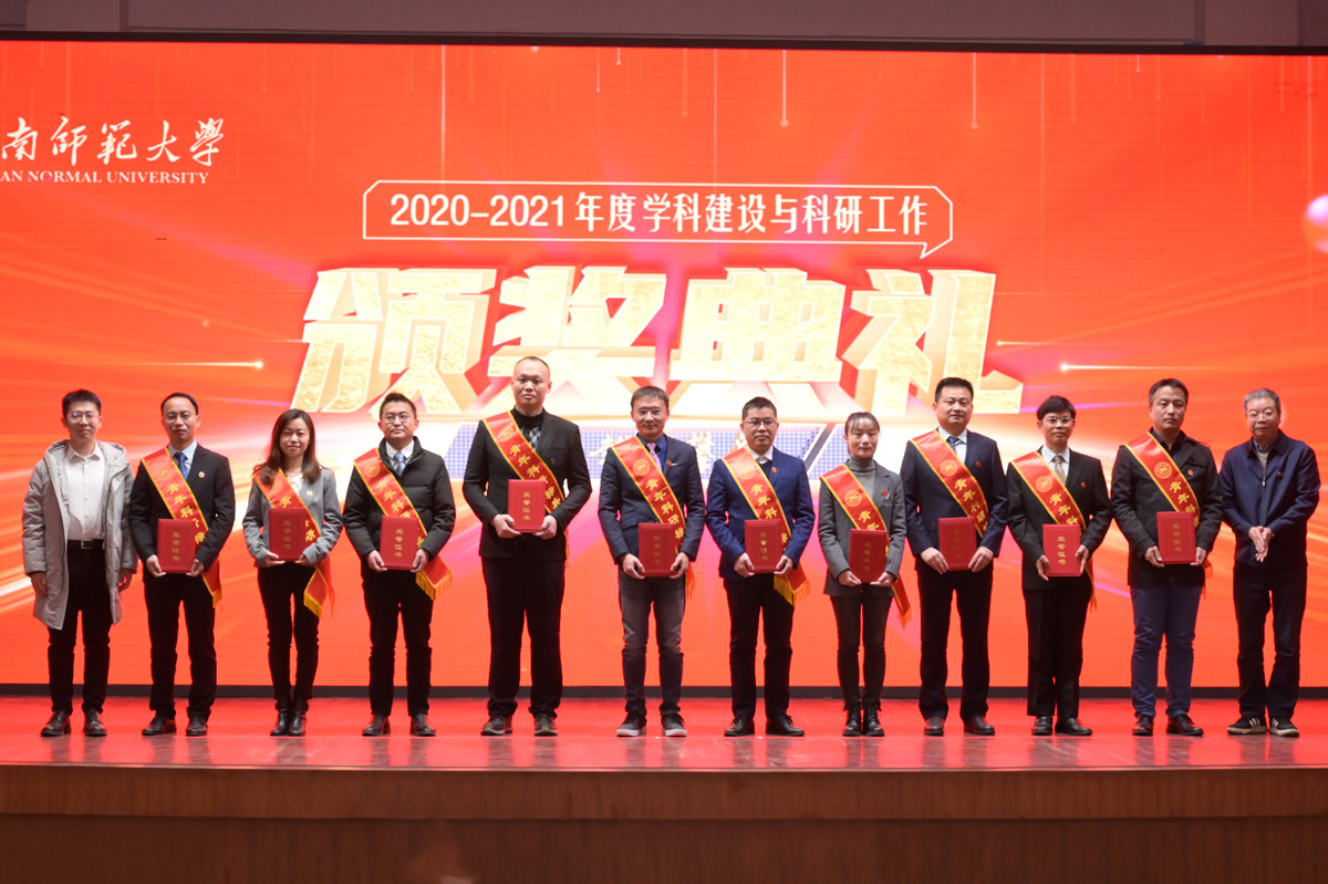 蔣洪新向獲獎先進(jìn)集體和個人表示熱烈的祝賀,向?yàn)閷W(xué)校學(xué)科建設(shè)和科研工作作出貢獻(xiàn)的老師表示崇高的敬意和衷心的感謝。他指出,學(xué)校黨委和行政高度重視學(xué)科建設(shè)和科研工作,面對新的挑戰(zhàn)和形勢,將從以下四個方面繼續(xù)推進(jìn)各項(xiàng)工作。一是聚焦大學(xué)本源,更加突出教學(xué)與科研工作。要把教學(xué)和科研擺在更加突出的位置,一方面堅(jiān)守教學(xué),另一方面要以科研立身。二是聚焦立德樹人,以高質(zhì)量教學(xué)科研引領(lǐng)人才培養(yǎng)。要強(qiáng)化教書育人、科研育人,真正實(shí)現(xiàn)以高質(zhì)量教學(xué)科研引領(lǐng)高素質(zhì)人才培養(yǎng)。三是聚焦社會服務(wù),始終緊扣國家和社會重大戰(zhàn)略需求。要努力在服務(wù)現(xiàn)代化新湖南建設(shè)和國家經(jīng)濟(jì)社會發(fā)展中貢獻(xiàn)師大智慧和力量。四是聚焦協(xié)同創(chuàng)新,產(chǎn)出更多標(biāo)志性科研成果。要把學(xué)校傳統(tǒng)的優(yōu)勢學(xué)科做強(qiáng),把國家戰(zhàn)略急需的學(xué)科做精,把新興交叉融合的學(xué)科做實(shí),不斷提升科研能力。