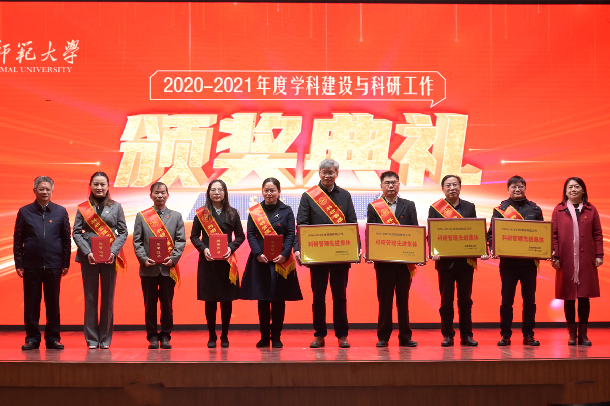 副校長謝資清宣讀了學(xué)校《關(guān)于表彰2020-2021年度湖南師范大學(xué)科研標(biāo)兵、青年科研標(biāo)兵、科研管理先進(jìn)集體和科研管理先進(jìn)個人的的決定》。