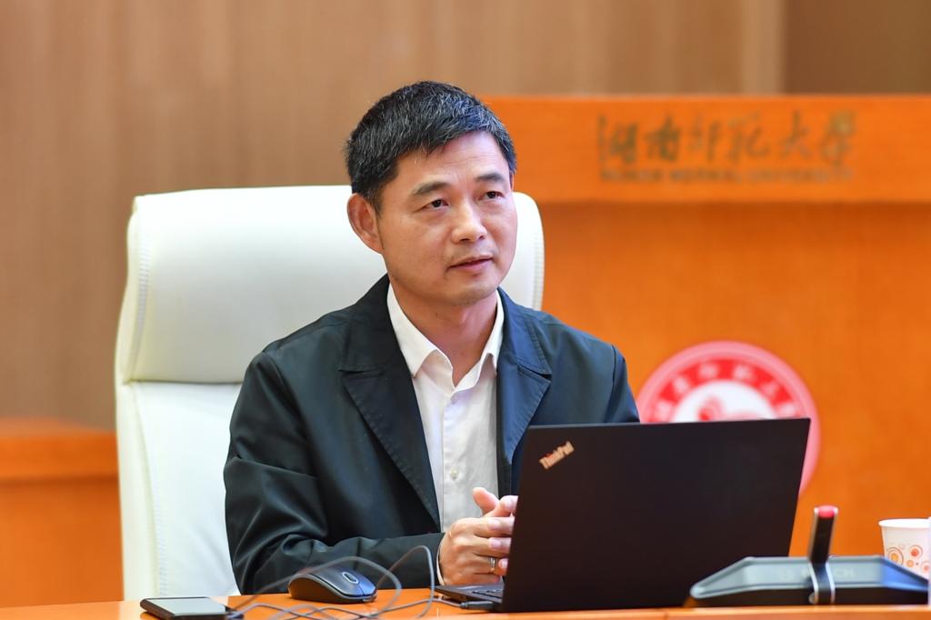 劉子蘭以《增強本科人才培養能力,提高本科人才培養質量》為題作中心發言。他認為,高質量發展是習近平總書記關于教育重要論述中對本科教育教學工作提出的根本要求,他從“推進專業內涵建設,優化人才培養結構”“加強一流課程建設,提升課堂教學質量”“深化培養模式改革,完善人才培養體系”等方面介紹了“十三五”以來我校本科教育教學工作基本情況。劉子蘭圍繞貫徹落實習近平總書記關于教育的重要論述推動我校本科教育高質量發展談了三點思考:一是要聚焦專業、課程、教師,進一步提高人才培養能力;二是要著眼拔尖創新人才,進一步深化培養模式改革;三是要突出自身核心優勢,進一步強化教師教育特色。
