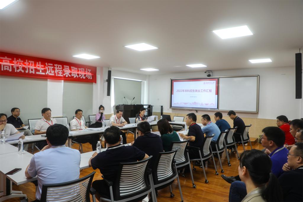 劉起軍詳細了解了當前招生錄取工作進展、招生工作流程、生源質量等情況,對我校本科招生錄取工作給予充分肯定,并向冒著高溫酷暑堅守崗位辛勤工作的全體工作人員表示感謝。他表示,招生錄取工作涉及到廣大考生切身利益,牽涉到千家萬戶,關系到社會公平及穩定,責任重大,使命光榮。學校黨委高度重視,各學院、有關職能部門密切配合,堅持用優良的校風、深厚的積淀和強勁的學科實力吸引學生。今年學校全日制本科招生錄取各項工作穩步推進,生源質量繼續保持優異。他希望相關職能部門、各學院繼續發揚優良傳統,把好入口質量關,及時總結招生錄取各項工作的經驗,力爭學校生源質量再上新臺階。他強調,要做好錄取數據統計分析,為專業建設提供支撐,推動專業結構不斷優化,為持續提升學校人才培養質量奠定堅實基礎,為促進學校高質量內涵式發展提供科學依據。