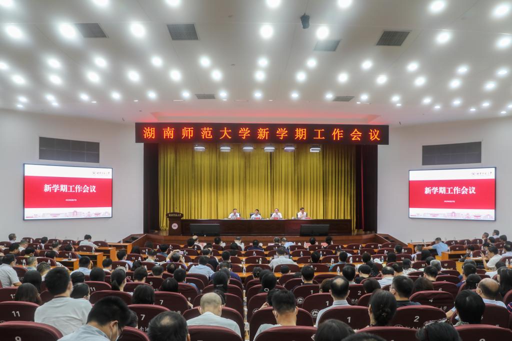 蔣洪新傳達(dá)了習(xí)近平總書記在省部級(jí)主要領(lǐng)導(dǎo)干部專題研討班上的重要講話精神,要求全體黨員干部要深刻領(lǐng)會(huì)習(xí)近平總書記重要講話的政治意義、理論意義和實(shí)踐意義,學(xué)習(xí)宣傳和貫徹落實(shí)好習(xí)近平總書記重要講話精神。他代表學(xué)校向長(zhǎng)期以來辛勤工作的師生員工表示感謝,并對(duì)學(xué)校新學(xué)期各項(xiàng)工作做出部署:一是要抓主責(zé),牢牢把握正確辦學(xué)方向。各部門要站穩(wěn)意識(shí)形態(tài)陣地,樹立立體思維,牢牢掌握工作的主導(dǎo)權(quán);要團(tuán)結(jié)一心、齊心協(xié)力,爭(zhēng)取在黨建和思政相關(guān)項(xiàng)目指標(biāo)上實(shí)現(xiàn)新突破,既彰顯黨建工作實(shí)效,也服務(wù)雙一流建設(shè)。二是要守底線,確保學(xué)校安全穩(wěn)定大局。要守住疫情防控底線,切實(shí)保障全體師生身體健康和生命安全;要守住安全生產(chǎn)底線,全方位強(qiáng)化校園安全工作;要守住校園穩(wěn)定底線,著力解決師生重點(diǎn)關(guān)注的問題。三是要搶先機(jī),乘勢(shì)引領(lǐng)學(xué)校戰(zhàn)略發(fā)展。學(xué)校要緊扣智慧校園和“雙一流”建設(shè),搶抓戰(zhàn)略機(jī)遇,增強(qiáng)戰(zhàn)略意識(shí),提升斗爭(zhēng)本領(lǐng),以正確的戰(zhàn)略策略應(yīng)變局、育新機(jī)、開新局,持續(xù)推進(jìn)學(xué)校各項(xiàng)事業(yè)發(fā)展。四是要強(qiáng)基礎(chǔ),不斷優(yōu)化內(nèi)部治理結(jié)構(gòu)。在推進(jìn)學(xué)校內(nèi)設(shè)機(jī)構(gòu)改革工作上,要堅(jiān)決貫徹落實(shí)省委工作部署,堅(jiān)持穩(wěn)妥有序,注重統(tǒng)籌協(xié)調(diào)推進(jìn)各項(xiàng)工作;要繼續(xù)保持優(yōu)良作風(fēng),確保機(jī)構(gòu)改革平穩(wěn)順利。五是要抓重點(diǎn),著力打造和諧美麗校園。要科學(xué)規(guī)劃校園建設(shè),持續(xù)優(yōu)化校園環(huán)境,拓展辦學(xué)空間,解決師生訴求,以堅(jiān)定的信念決心和昂揚(yáng)的精神狀態(tài),投身美麗師大建設(shè),以實(shí)際行動(dòng)迎接黨的二十大勝利召開。