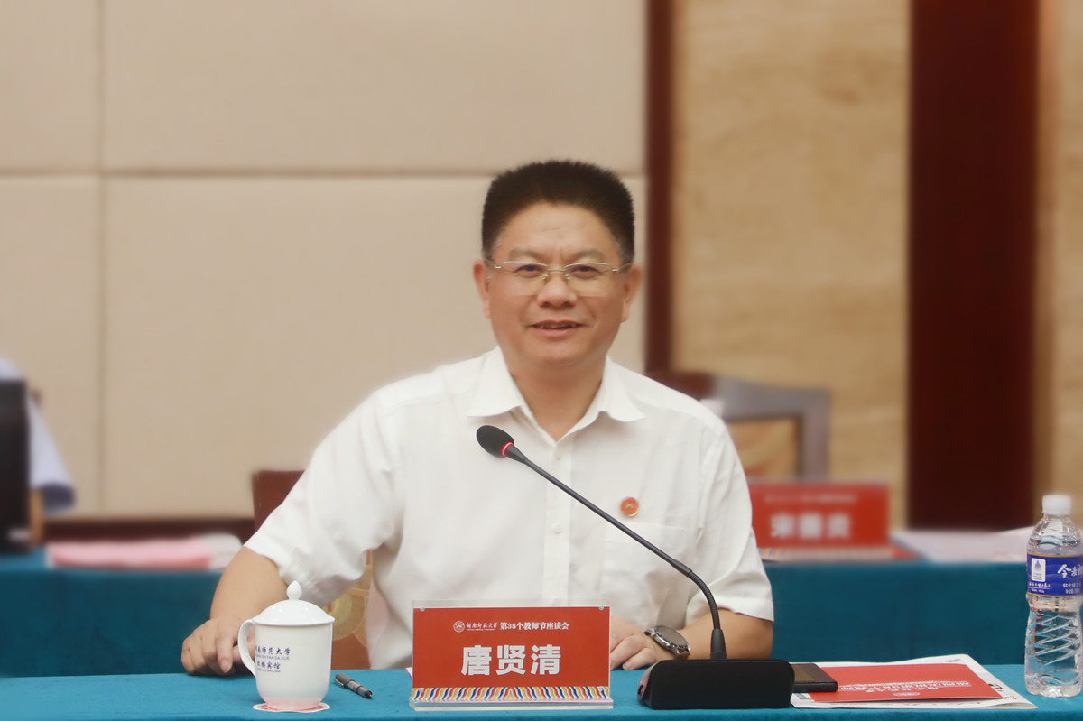 蔣洪新向全校教職工和從事教育工作的校友致以節(jié)日的問候和祝福。他表示,從教職工代表精彩發(fā)言中感受到了教師們對學(xué)校、教育事業(yè)發(fā)自內(nèi)心的熱愛以及為學(xué)校謀發(fā)展的決心。他向廣大教師提出了三點希望:一是堅持立德樹人,以高尚師德引領(lǐng)學(xué)生成長。“親其師則信其道”,立德樹人是教育的根本任務(wù),也是教師的光榮使命,教師要以先進教育理念、科學(xué)教育方法,教好每一個學(xué)生,上好每一堂課,實現(xiàn)價值引領(lǐng)與知識傳授、能力培養(yǎng)相統(tǒng)一,成為“為學(xué)、為事、為人”的“大先生”。二是心懷國之大者,以求實創(chuàng)新服務(wù)國家需求。“師大出大師,大師出師大”,學(xué)校要堅持教學(xué)科研并重,努力培養(yǎng)造就一大批戰(zhàn)略科學(xué)家、領(lǐng)軍人才和高水平創(chuàng)新團隊,為落實湖南“三高四新”戰(zhàn)略,服務(wù)國家重大需求做出一流貢獻。三是弘揚師范仁道,以尊師重才助推盛學(xué)興校。“以綜合強師范,以師范彰顯辦學(xué)特色”,師范是學(xué)校立校之本,要大力弘揚尊師重教、崇智尚學(xué)的優(yōu)良傳統(tǒng),通過推出一系列惠師政策和強師政策,加強教師榮譽制度建設(shè)等措施,努力為全體教職工營造良好工作生活環(huán)境,共建幸福師大。