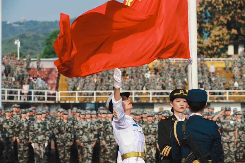 女子國旗護衛隊帶來槍操表演,展現了隊員們昂揚奮進的精神面貌。
