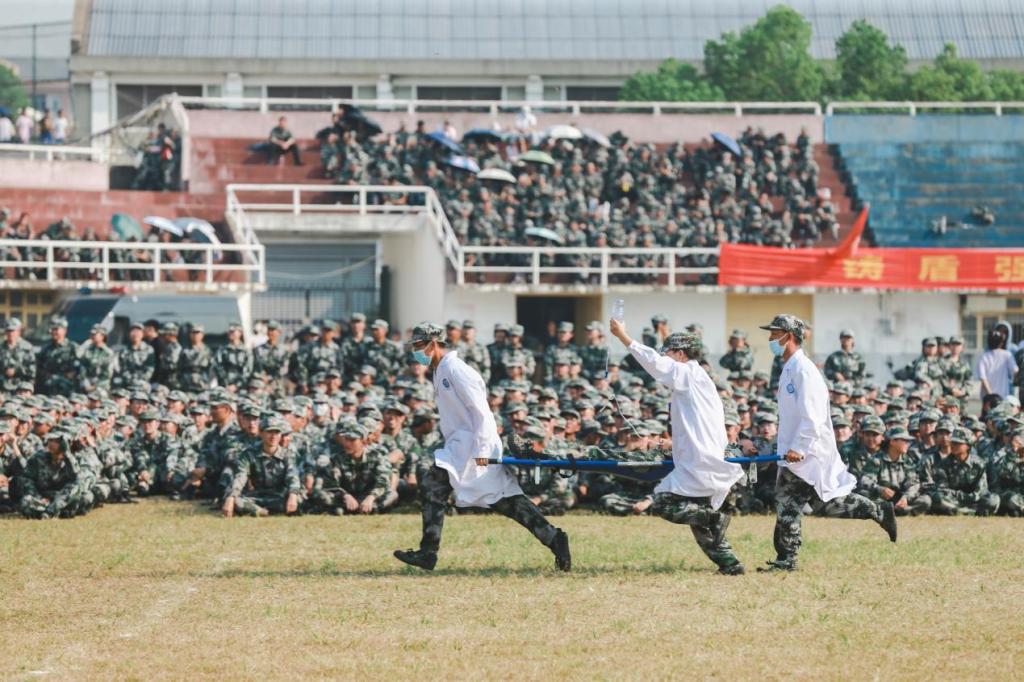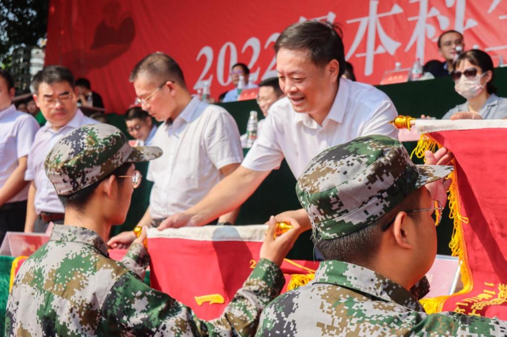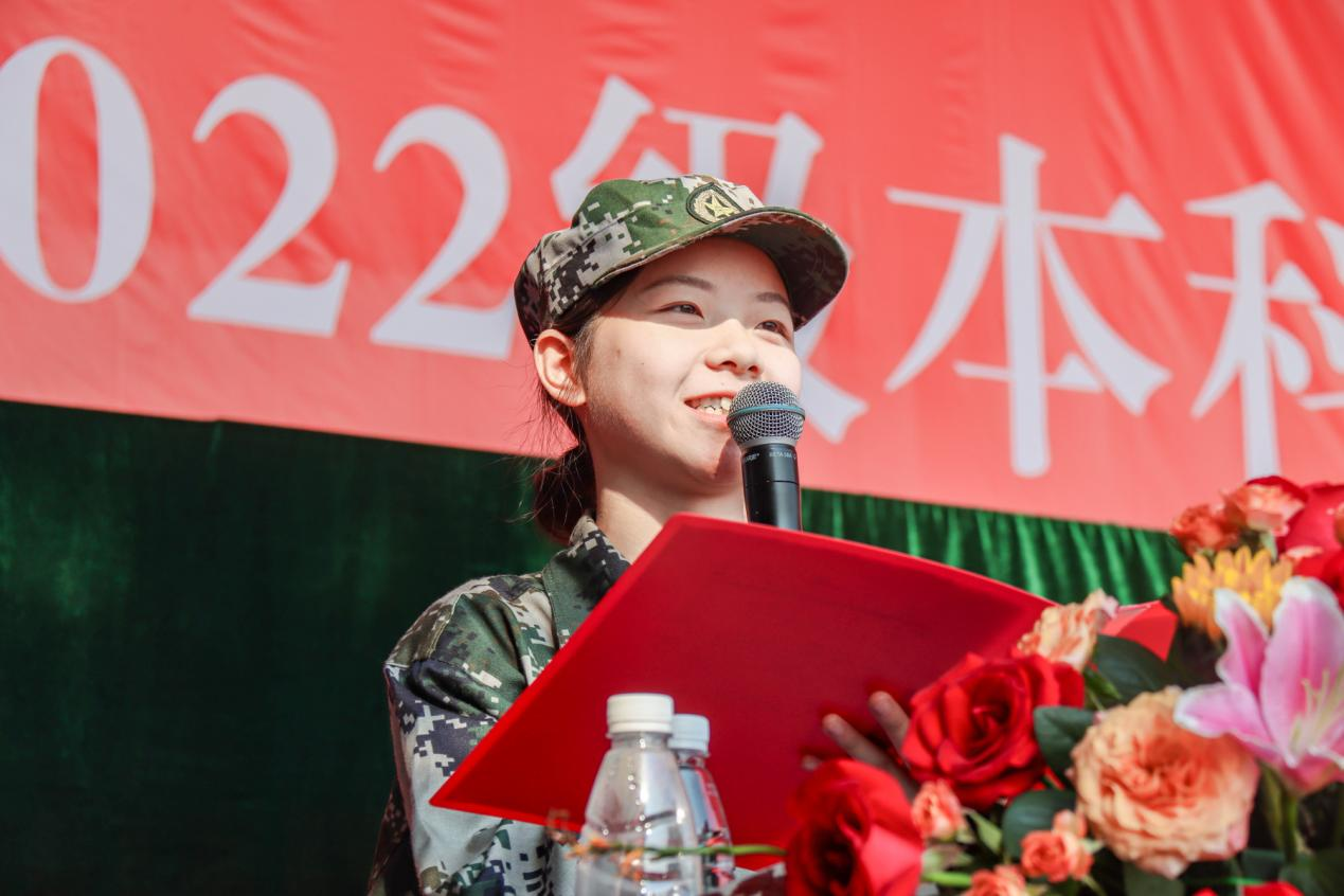學生工作部、武裝部部長向發意作軍訓總結講話。他對新生們為期21天的軍訓成果給予充分肯定。他表示,軍訓既是一堂國防教育課,也是一堂意志磨練課,更是一堂大學適應課。他相信,2022級本科新生決不是怯風怕雨、柔柔弱弱的溫室花朵,而是敢于搏擊風雨、展翅翱翔的藍天雄鷹。