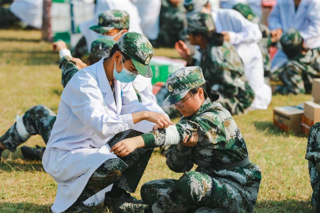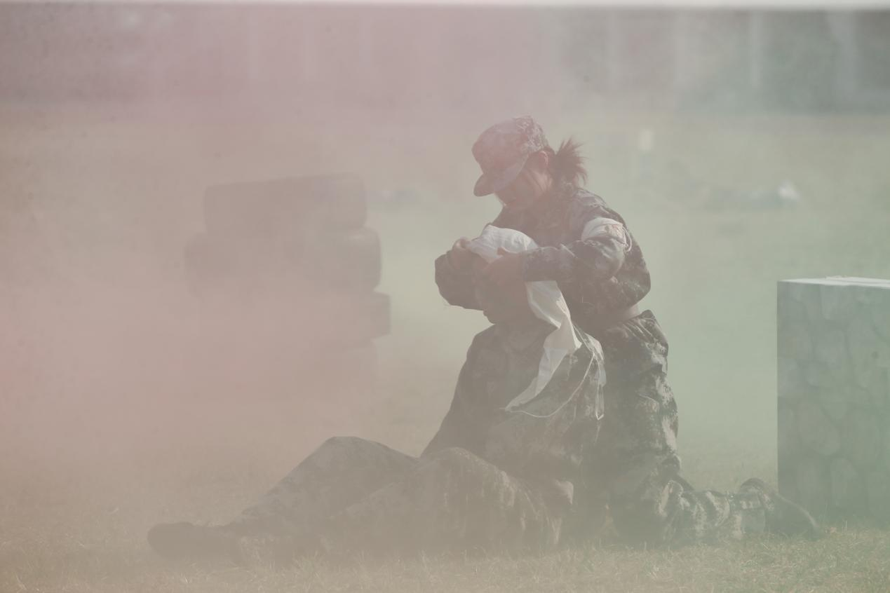 醫學院帶來戰場自救互救演練,展現了醫學院學子們不懼危難、逆風而行的精神。