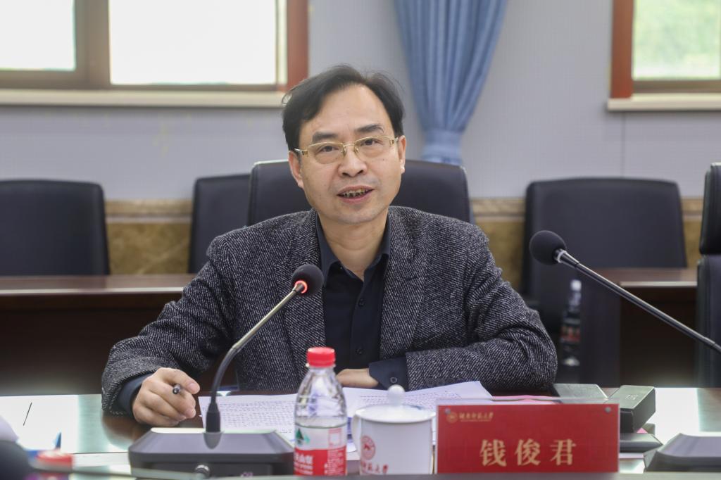 蔣洪新代表學校向錢俊君一行的到來表示歡迎,對省市場監督管理局長期以來給予學校事業發展的關心支持表示感謝,并簡要介紹了我校的發展歷史及校區建設情況。他強調,我校始終堅持黨的全面領導,堅定社會主義辦學方向,充分利用統一戰線重要法寶作用,深入實施人才強校戰略,為國家經濟發展貢獻師大智慧和力量。他表示,學校深入貫徹落實黨的二十大精神,將繼續發揮科研、人才、信息等方面優勢,在省市場監督管理局的關心支持下,在更深程度、更高水平上推動協同創新,助推國家經濟社會高質量發展。