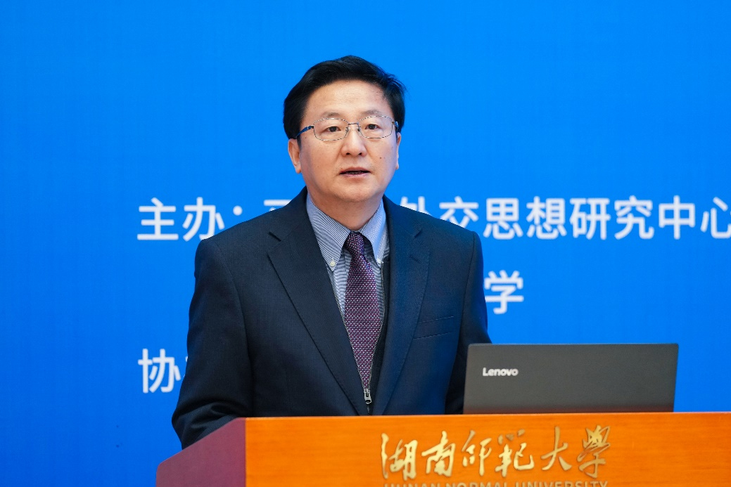 (供稿 外國語學院)3月18日,“習近平外交思想研討會”在我校召開,本次研討會由習近平外交思想研究中心和我校聯合舉辦,會議主題為“以習近平外交思想為指引,推動構建人類命運共同體”。湖南省政協副主席李民,習近平外交思想研究中心秘書長、中國國際問題研究院院長徐步,我校黨委書記蔣洪新,天津市外辦主任欒建章,中國網總編輯、習近平外交思想和新時代中國外交網站總編輯王曉輝出席開幕式并致辭。