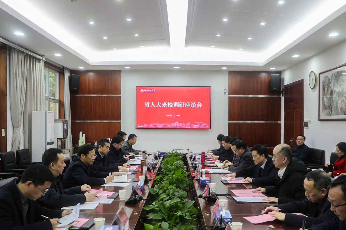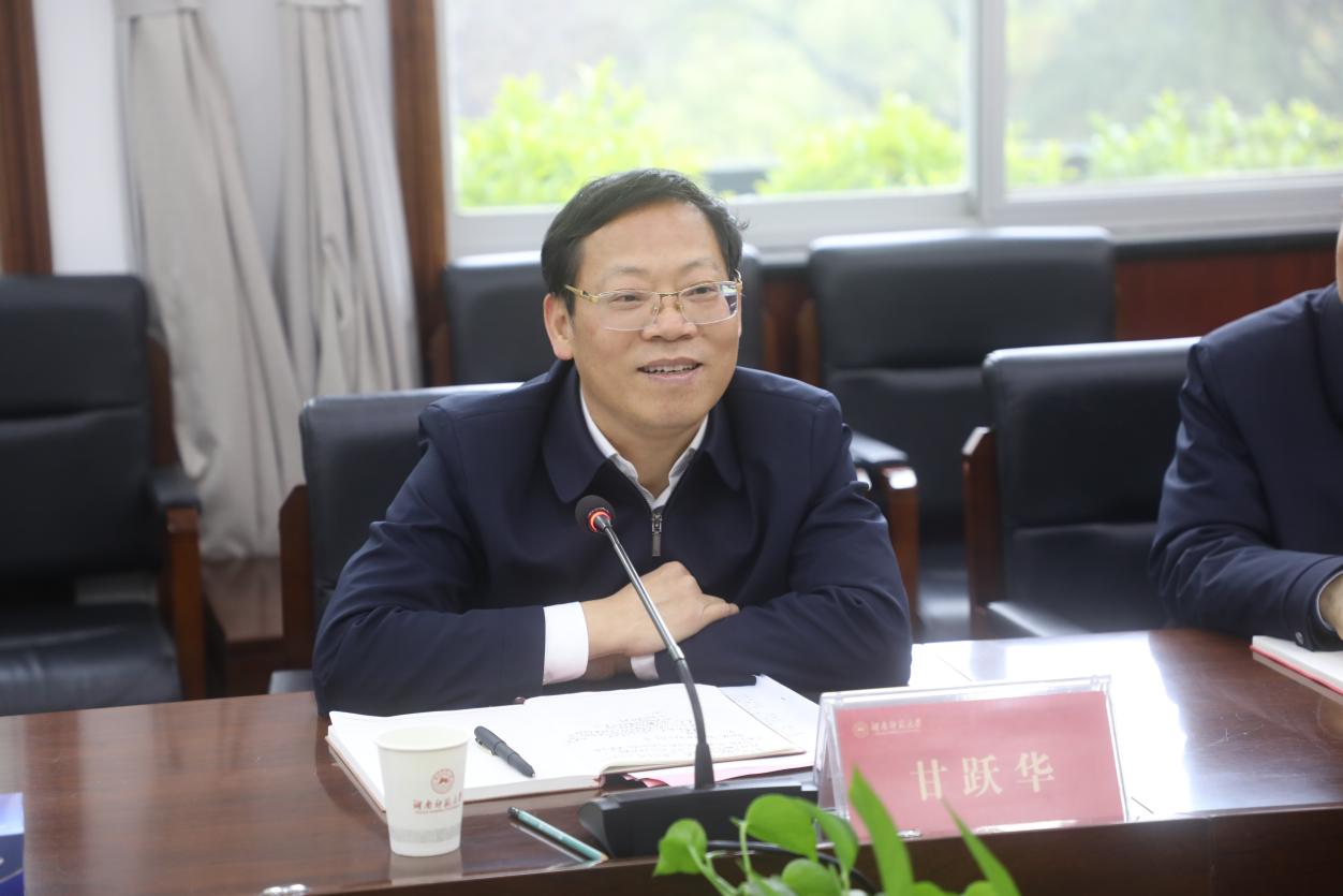 (記者 馬鐵泉 馮振輝)3月23日下午,湖南省人大常委會委員、教科文衛委主任委員甘躍華一行來校走訪調研。我校黨委書記蔣洪新,副校長劉懷德、謝資清出席座談會,會議由副校長楊震主持。