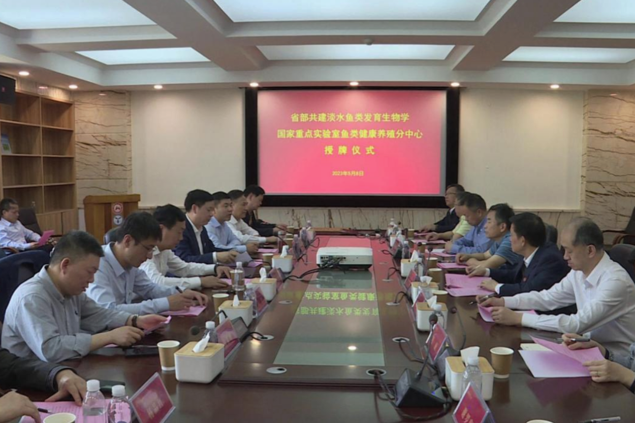 (記者 夏文靜 余秋雁)為響應(yīng)中央關(guān)于加強(qiáng)水產(chǎn)種業(yè)發(fā)展及水產(chǎn)養(yǎng)殖業(yè)綠色發(fā)展的布局,更好地發(fā)揮國(guó)家重點(diǎn)實(shí)驗(yàn)室服務(wù)地方經(jīng)濟(jì)、引領(lǐng)科研創(chuàng)新的作用,湖南師范大學(xué)省部共建淡水魚(yú)類(lèi)發(fā)育生物學(xué)國(guó)家重點(diǎn)實(shí)驗(yàn)室吸納湖南省水產(chǎn)研究主要力量,分別在湖南文理學(xué)院、湖南省水產(chǎn)科學(xué)研究所、湖南農(nóng)業(yè)大學(xué)、長(zhǎng)沙學(xué)院設(shè)立魚(yú)類(lèi)健康養(yǎng)殖分中心。5月8日下午,省部共建淡水魚(yú)類(lèi)發(fā)育生物學(xué)國(guó)家重點(diǎn)實(shí)驗(yàn)室為湖南文理學(xué)院魚(yú)類(lèi)健康養(yǎng)殖分中心舉行授牌儀式。
