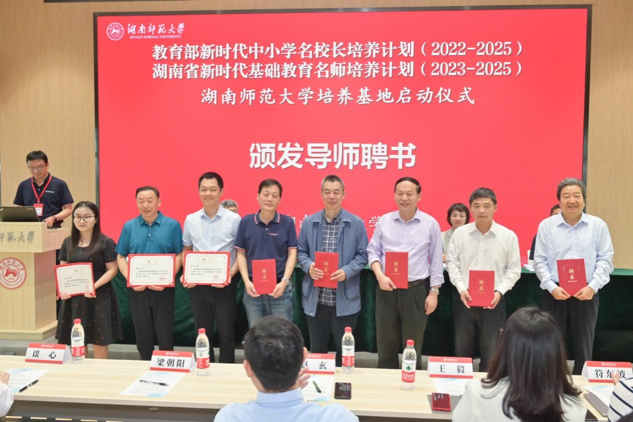 據(jù)悉,為著力建設(shè)高素質(zhì)專業(yè)化創(chuàng)新型教師校長隊伍,在充分總結(jié)中小學(xué)名師名校長領(lǐng)航工程經(jīng)驗的基礎(chǔ)上,教育部決定實施新時代中小學(xué)名師名校長培養(yǎng)計劃(簡稱“雙名計劃”)。我校長期以來重視基礎(chǔ)教育研究,深耕中小學(xué)校長和教師培訓(xùn)研究與實踐領(lǐng)域,構(gòu)建了成熟的培訓(xùn)體系,于2022年底成功入選教育部“雙名計劃”名校長培養(yǎng)基地,成為全國十個名校長培養(yǎng)基地之一,并且是其中唯一的地方師范院校;于2023年1月入選湖南省“雙名計劃”名師培養(yǎng)基地,是湖南省6個培養(yǎng)基地唯一的省內(nèi)院校。