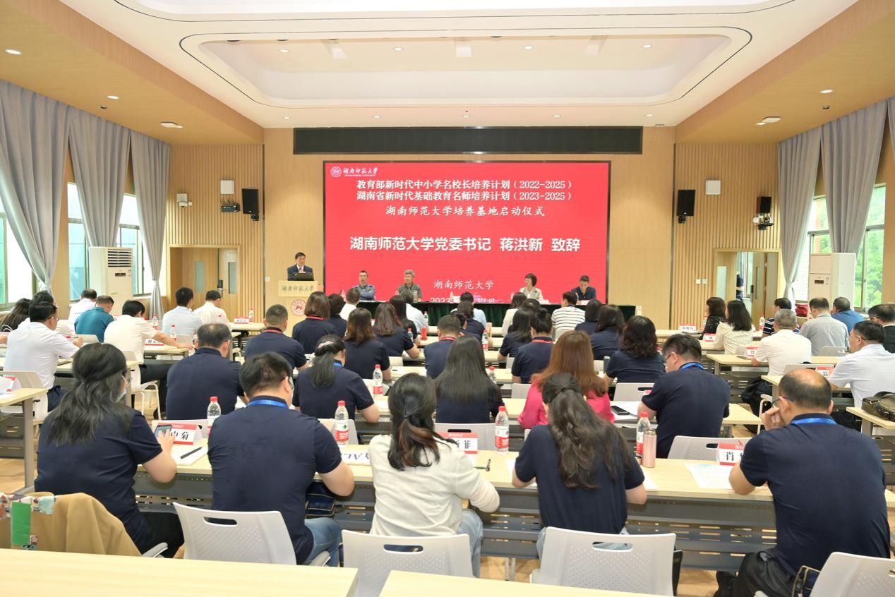 (供稿 干訓(xùn)辦)5月17日上午,教育部新時代中小學(xué)名校長培養(yǎng)計劃(2022—2025)、湖南省新時代基礎(chǔ)教育名師培養(yǎng)計劃(2023—2025)湖南師范大學(xué)培養(yǎng)基地啟動儀式在騰龍樓613報告廳舉行。教育部全國中小學(xué)教師校長培訓(xùn)專家工作組秘書長黃貴珍、教育部中小學(xué)校長和幼兒園園長國家級培訓(xùn)項目管理辦公室主任于維濤、校黨委書記蔣洪新出席活動。儀式由副校長蔣新苗主持。