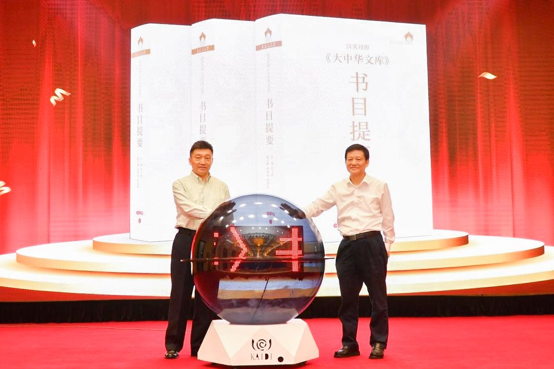 與會專家學者共同見證《漢英對照〈大中華文庫〉書目提要》新書發布,于濤、蔣洪新共同為新書揭幕。