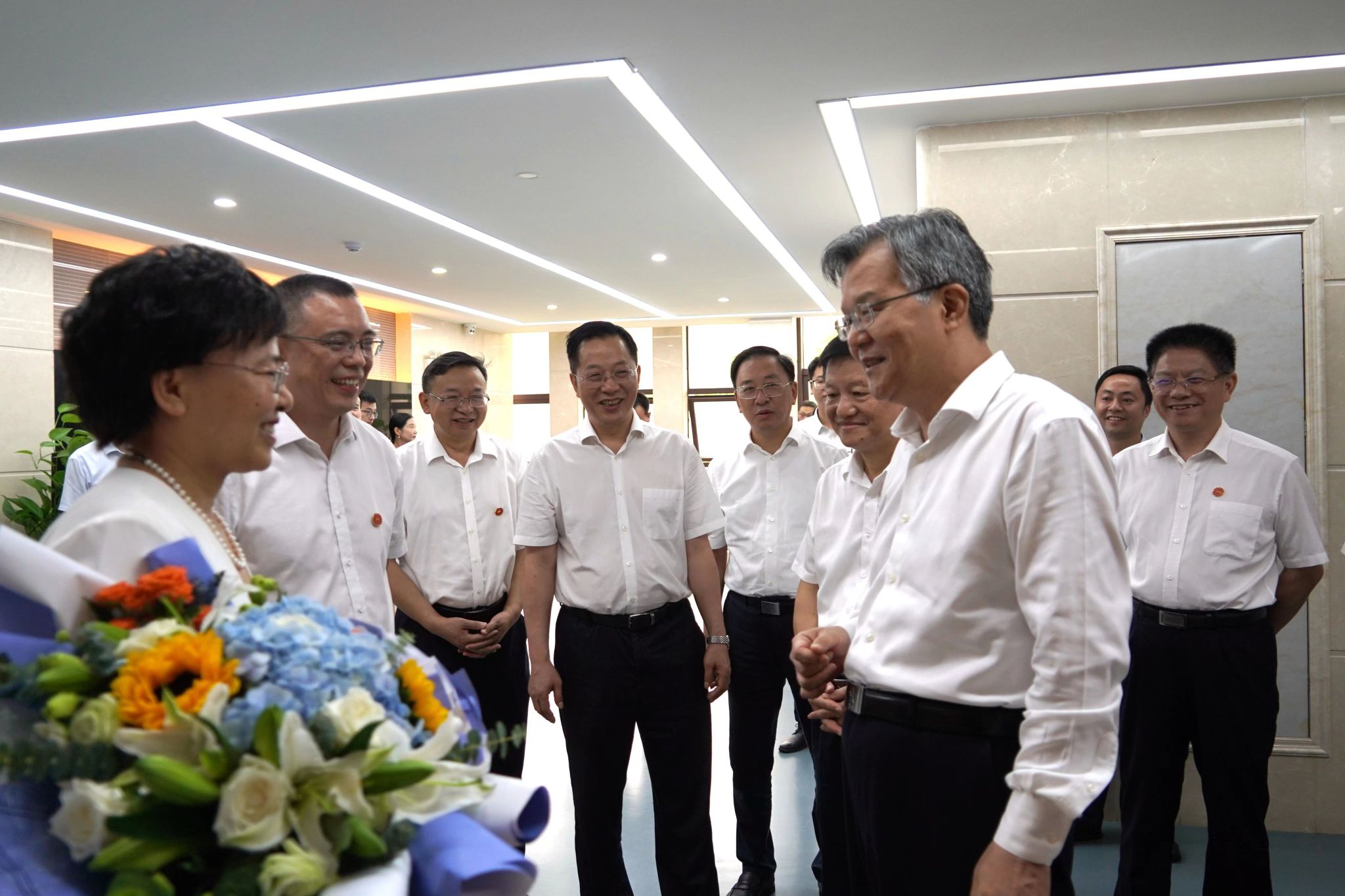 李殿勛考察了外國語言文學世界一流學科展廳,向全國“明德教師獎”獲得者李愛年、湖南省先進工作者劉紅榮教授送去節(jié)日祝福,對他們?nèi)〉玫某删捅硎举澰S,希望他們圍繞國家所需、湖南所急,發(fā)揮自身專業(yè)所長,加強對重大理論和實踐問題的研究,并更加注重推動科研成果轉(zhuǎn)化應用,為加快實現(xiàn)“三高四新”美好藍圖作出新的更大貢獻。