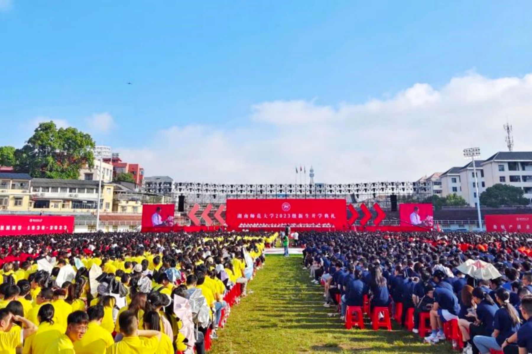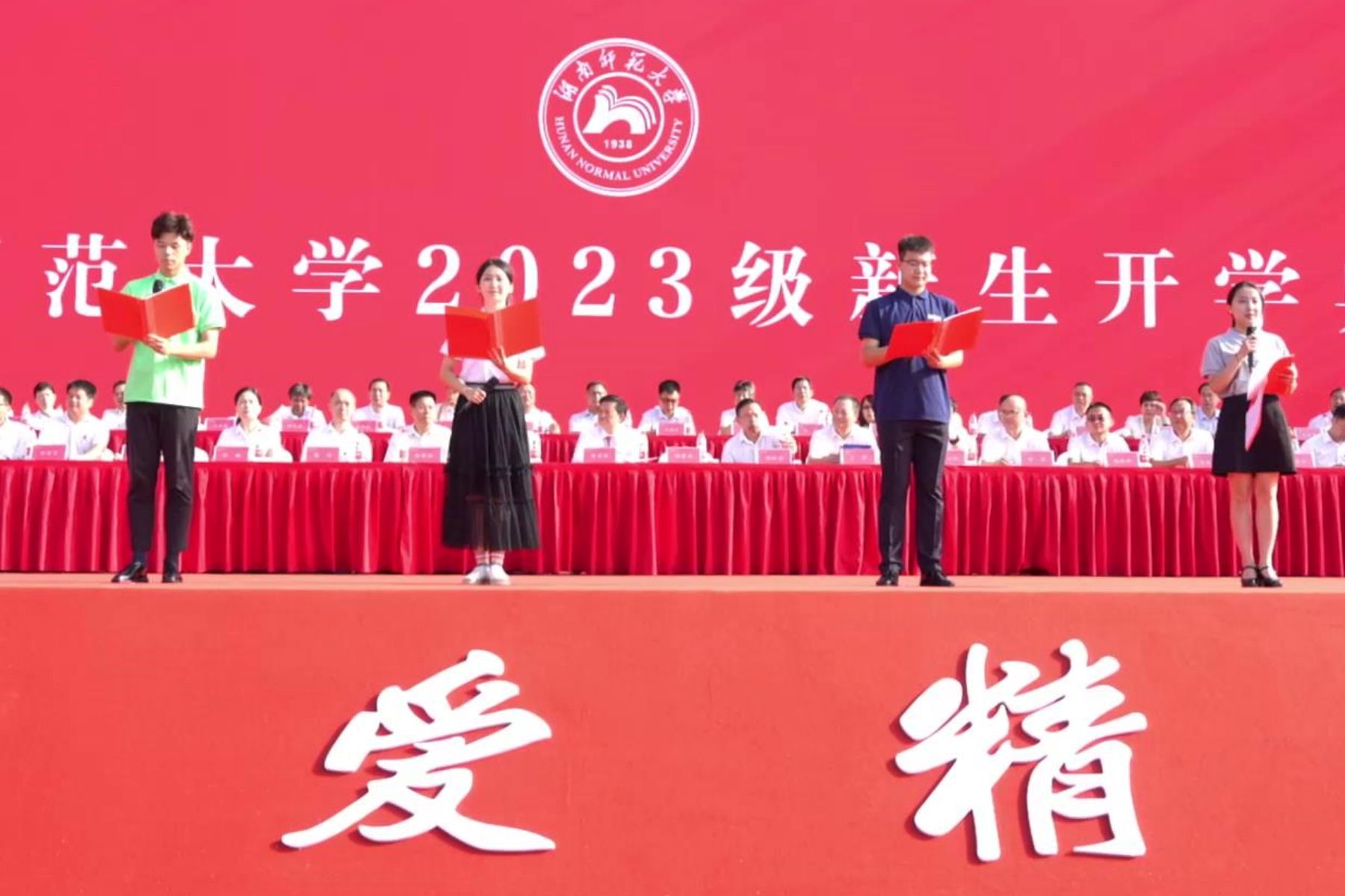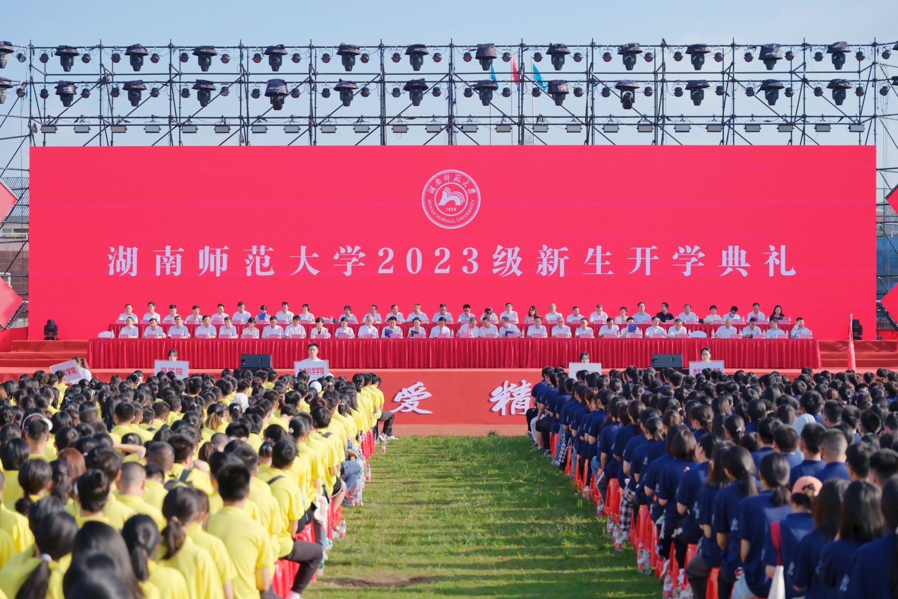校黨委書記、歐洲科學院院士蔣洪新致辭并為新生講授“開學第一課”。他說,今年10月27日,學校將迎來建校85周年華誕,你們的到來,讓這所歷史悠久、聲名卓著的高等學府,煥發出新的青春活力。他對全體新生提出殷切期望:一是希望大家讀書知禮,心存感恩。讀書既能讓我們增知益見,開闊眼界;又能明德知禮,修身養性。岳麓山下好讀書,期待大家都能靜下心讀書致知、讀書明理,帶著溫情與敬意在經典著作中觸摸智慧、學會感恩、汲取力量。同學們應心存感恩,葆有善意,傳遞信任。從自我做起,從小事做起,從現在做起,弘揚仁愛精勤的師大精神,尊師重道,感恩父母、師長和朋友的陪伴與幫助,感謝生活的饋贈與當下的擁有。希望同學們堅持讀書知禮,努力成為一個知書達理、知恩圖報、知責奮進的師大人。二是希望大家創新求索,心系家國。我們的大學自創建之時,就以“做文化的先進,國民的導師”為理想,85年來,一代代師大人,赤誠愛國的追求始終未改,教育報國的初心始終未變。希望大家始終心懷“國之大者”,厚植家國情懷,勤于探索,善于思考,敢于創新,在不斷求索和堅持中,努力成為一個追求真理、肩荷使命、全面發展的師大人。三是希望大家篤行實干,心懷夢想。當今世界正在經歷百年未有之大變局,世界之變、時代之變、歷史之變正加速演進,對于美好夢想的堅守彌足珍貴。希望大家踴躍投身到志愿服務、創新創業、鄉村振興、社會治理、國際交流中去,拓寬思維視野,全面提升素養,實現人生價值,在矢志奮斗、不懈拼搏中,努力成為一個立大志、明大德、成大才、擔大任的師大人。他祝福同學們始終堅守大學追求真理、良善與美好的初心,度過一段奮進、充實、愉快而美好的大學時光,讓青春之花,在“三高四新”的美好藍圖、在民族復興的壯闊畫卷中璀璨綻放、熠熠生輝。