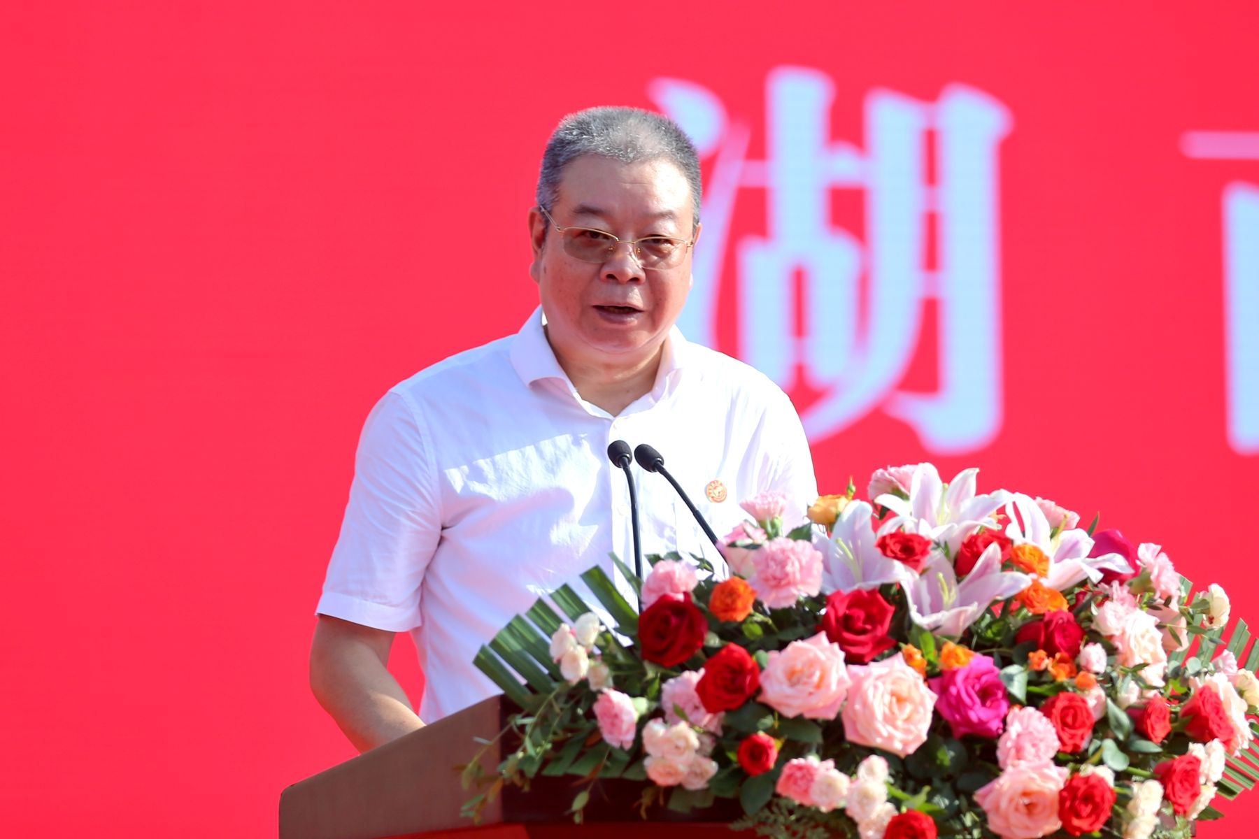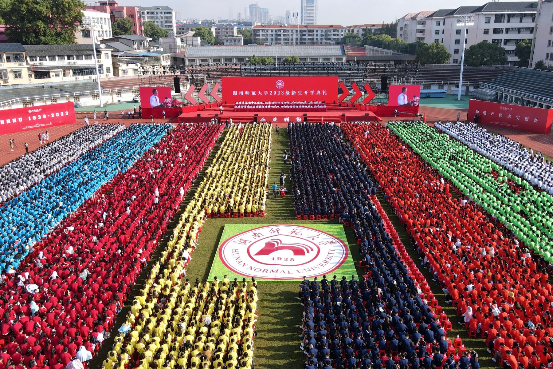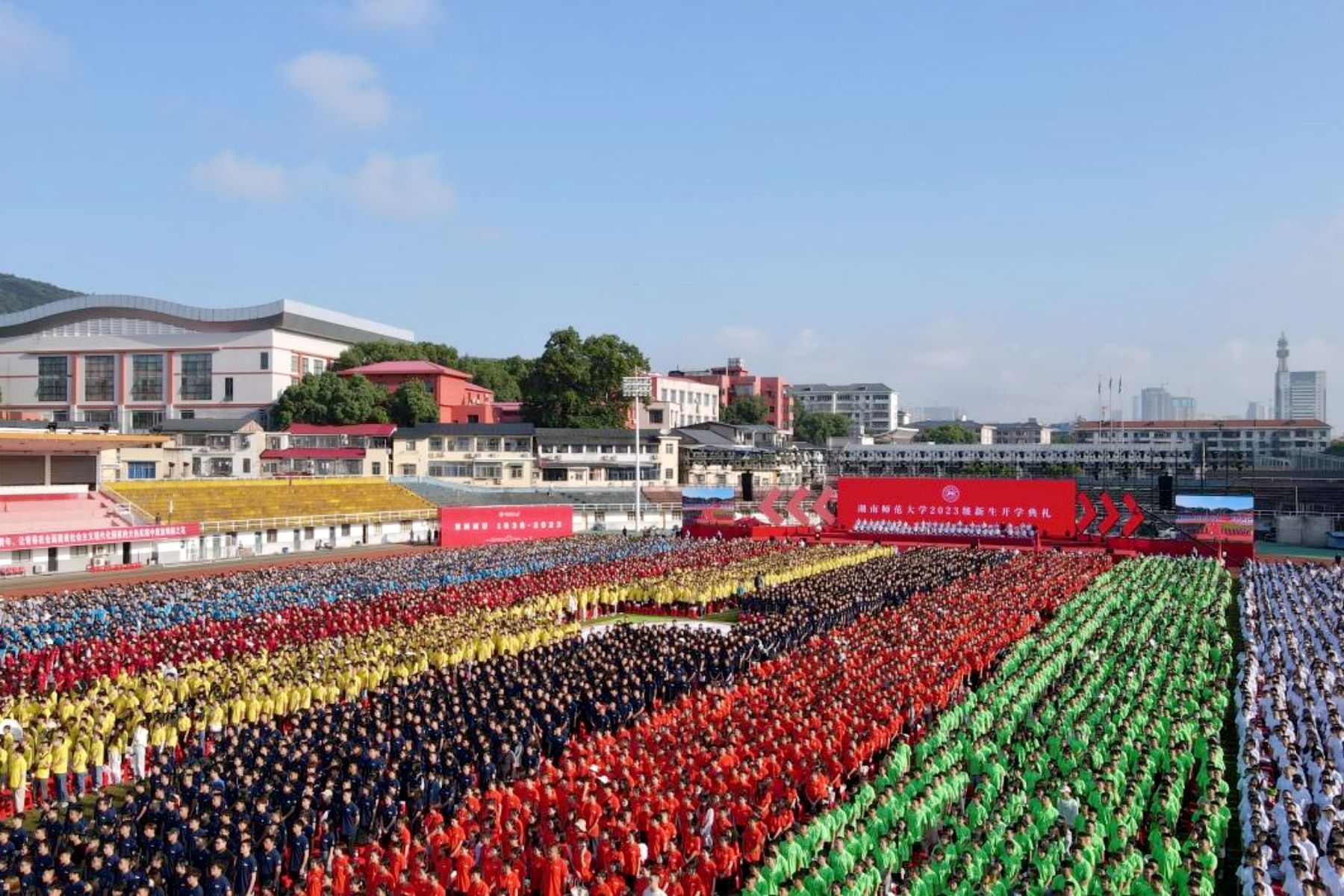 校黨委書記、歐洲科學院院士蔣洪新致辭并為新生講授“開學第一課”。他說,今年10月27日,學校將迎來建校85周年華誕,你們的到來,讓這所歷史悠久、聲名卓著的高等學府,煥發出新的青春活力。他對全體新生提出殷切期望:一是希望大家讀書知禮,心存感恩。讀書既能讓我們增知益見,開闊眼界;又能明德知禮,修身養性。岳麓山下好讀書,期待大家都能靜下心讀書致知、讀書明理,帶著溫情與敬意在經典著作中觸摸智慧、學會感恩、汲取力量。同學們應心存感恩,葆有善意,傳遞信任。從自我做起,從小事做起,從現在做起,弘揚仁愛精勤的師大精神,尊師重道,感恩父母、師長和朋友的陪伴與幫助,感謝生活的饋贈與當下的擁有。希望同學們堅持讀書知禮,努力成為一個知書達理、知恩圖報、知責奮進的師大人。二是希望大家創新求索,心系家國。我們的大學自創建之時,就以“做文化的先進,國民的導師”為理想,85年來,一代代師大人,赤誠愛國的追求始終未改,教育報國的初心始終未變。希望大家始終心懷“國之大者”,厚植家國情懷,勤于探索,善于思考,敢于創新,在不斷求索和堅持中,努力成為一個追求真理、肩荷使命、全面發展的師大人。三是希望大家篤行實干,心懷夢想。當今世界正在經歷百年未有之大變局,世界之變、時代之變、歷史之變正加速演進,對于美好夢想的堅守彌足珍貴。希望大家踴躍投身到志愿服務、創新創業、鄉村振興、社會治理、國際交流中去,拓寬思維視野,全面提升素養,實現人生價值,在矢志奮斗、不懈拼搏中,努力成為一個立大志、明大德、成大才、擔大任的師大人。他祝福同學們始終堅守大學追求真理、良善與美好的初心,度過一段奮進、充實、愉快而美好的大學時光,讓青春之花,在“三高四新”的美好藍圖、在民族復興的壯闊畫卷中璀璨綻放、熠熠生輝。