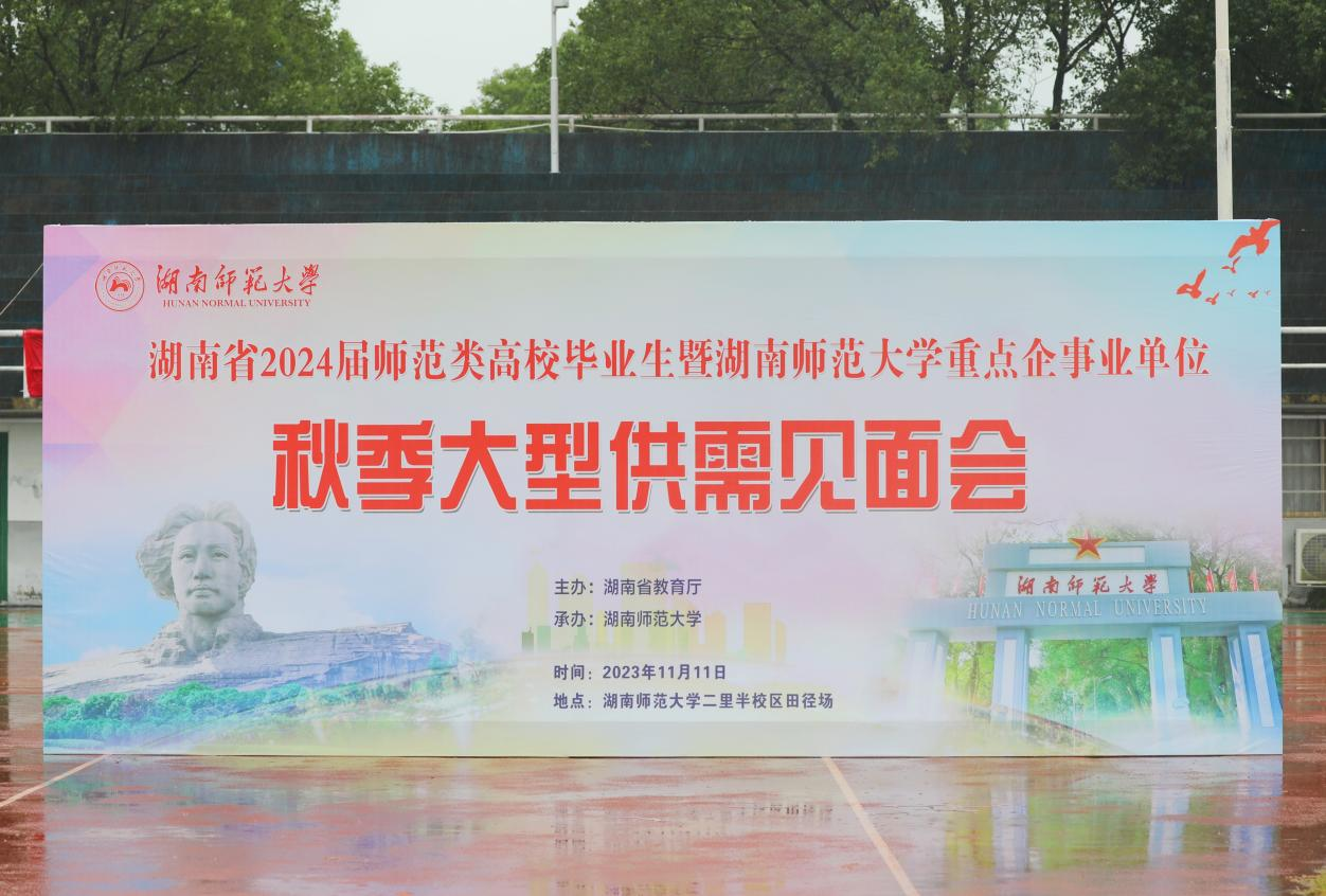 (記者 項和烽 梅玉婷)11月11日,湖南省2024屆師范類高校畢業生暨我校2024屆畢業生秋季重點企事業單位大型招聘會在學校田徑場舉行。湖南省就業指導中心主任鐘秋明、副主任曾靜,我校副校長王輝到場指導。