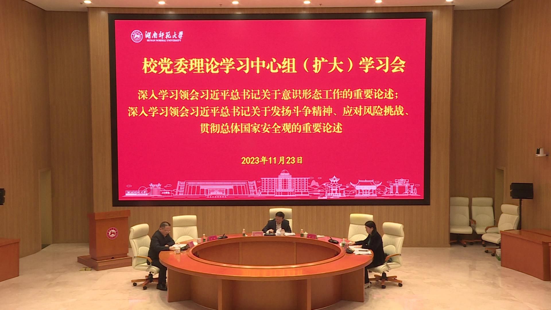 (通訊員 吳樂 記者 馬鐵泉 黃依依)11月23日下午,校黨委理論學習中心組在圖書館報告廳召開(擴大)學習會,深入學習領會習近平總書記關于意識形態工作的重要論述和習近平總書記關于發揚斗爭精神、應對風險挑戰、貫徹總體國家安全觀的重要論述。校黨委書記蔣洪新主持會議。