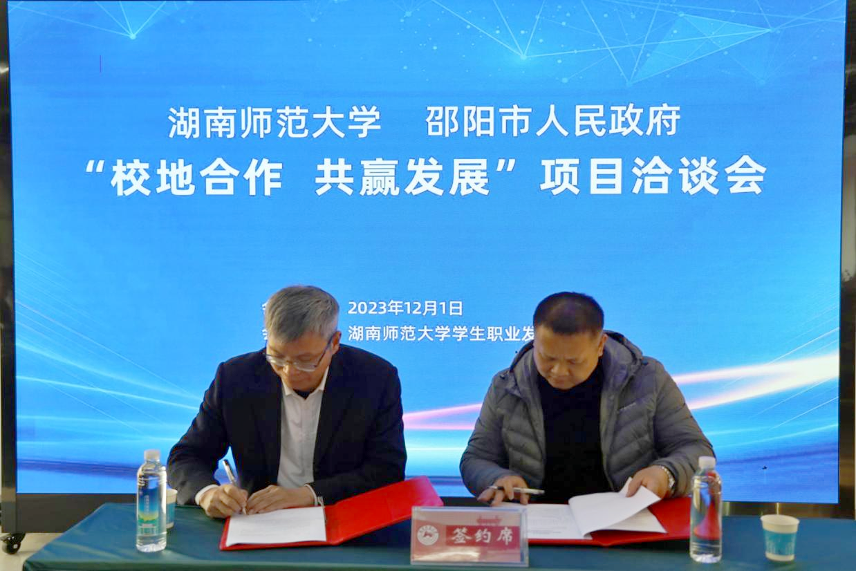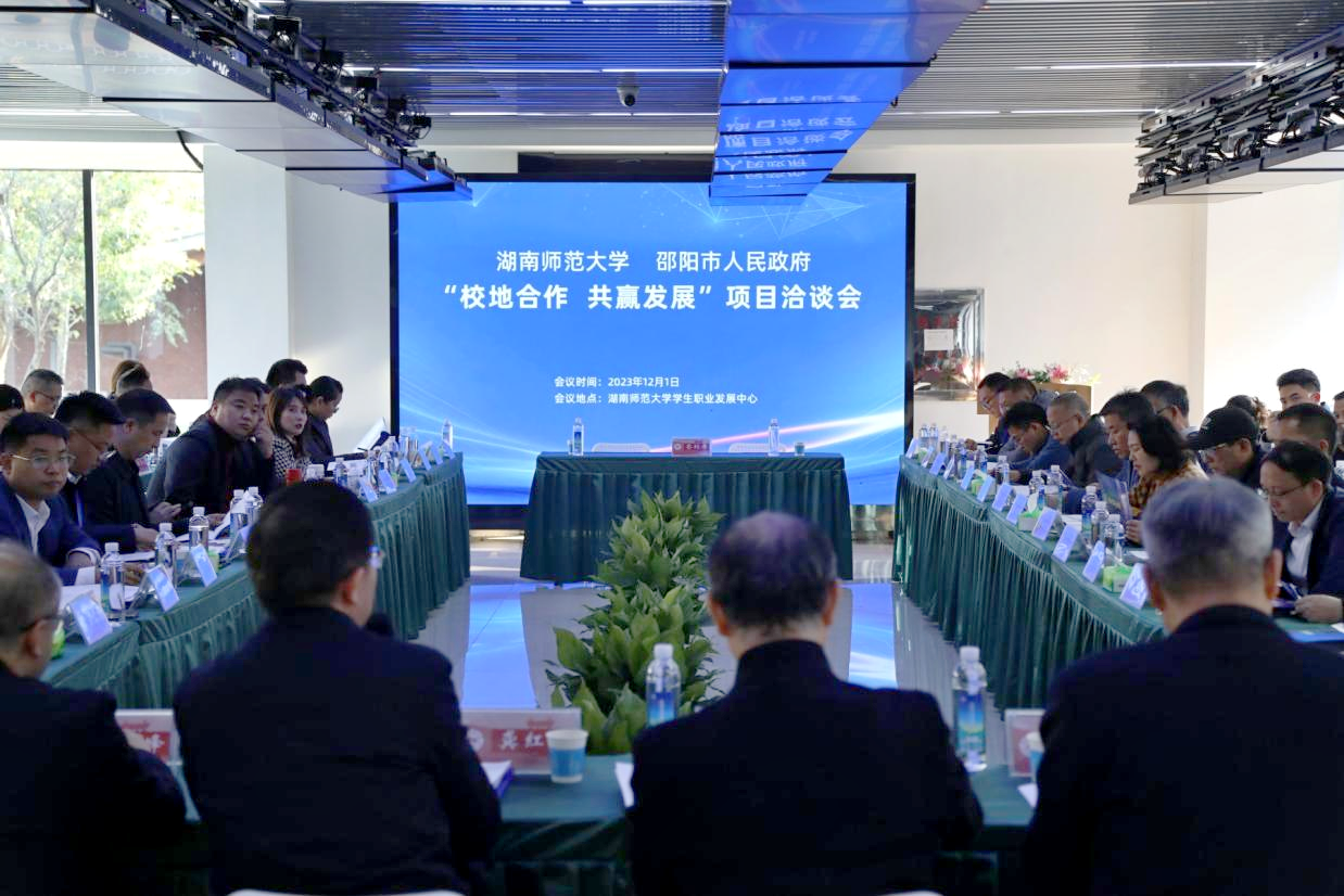 (記者 黃佳 李影)12月1日下午,我校與邵陽(yáng)市人民政府聯(lián)合舉辦的“校地合作,共贏發(fā)展”項(xiàng)目洽談會(huì)在桃子湖學(xué)生職業(yè)發(fā)展中心舉行。本次洽談會(huì)是落實(shí)今年2月27日與邵陽(yáng)市建立戰(zhàn)略伙伴關(guān)系、簽署戰(zhàn)略框架協(xié)議后的具體實(shí)踐。副校長(zhǎng)楊震,邵陽(yáng)市委常委、組織部部長(zhǎng)、統(tǒng)戰(zhàn)部部長(zhǎng)龔紅果出席會(huì)議。本次洽談分為開(kāi)幕會(huì)、項(xiàng)目對(duì)接、現(xiàn)場(chǎng)考察三個(gè)環(huán)節(jié)。開(kāi)幕會(huì)由校發(fā)展規(guī)劃與學(xué)科建設(shè)處處長(zhǎng)孫岳兵主持。