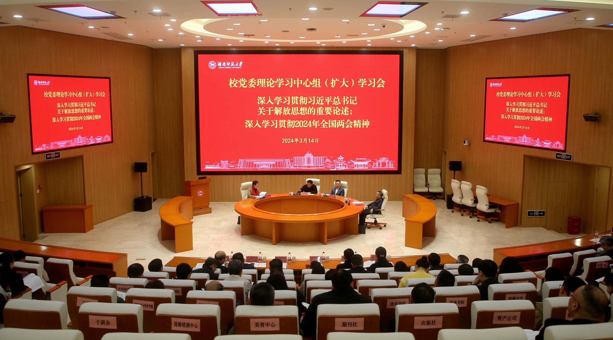 (記者 吳樂 郭若蘭 黃依依)3月14日上午,校黨委理論學習中心組(擴大)在圖書館報告廳召開學習會,深入學習貫徹習近平總書記關于解放思想的重要論述和2024年全國兩會精神。歐洲科學院院士、校黨委書記蔣洪新主持會議。