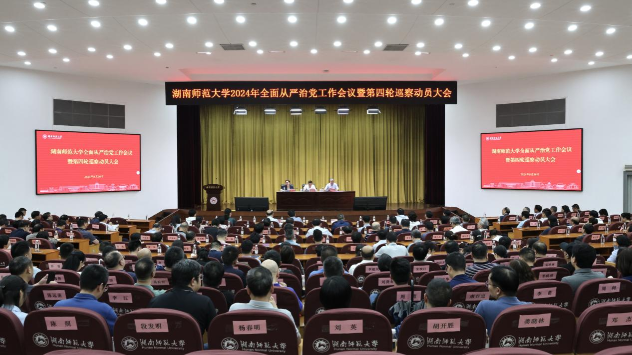 周俊武代表學校黨委宣讀了《中共湖南師范大學委員會第四輪巡察授權及任務分工決定》。他對巡察工作提出三點要求:一是提升思想認識,發揮政治巡察政治導向作用;二是深化精準監督,促進校內巡察具體化、常態化;三是增強行動自覺,推動新時代巡察工作高質量發展。他強調,要深入學習貫徹習近平總書記關于黨的自我革命的重要思想及新修訂的《中國共產黨巡視工作條例》,貫徹落實十二屆省委第六輪巡視動員部署會議精神,以高質量巡察監督護航學校高質量發展。