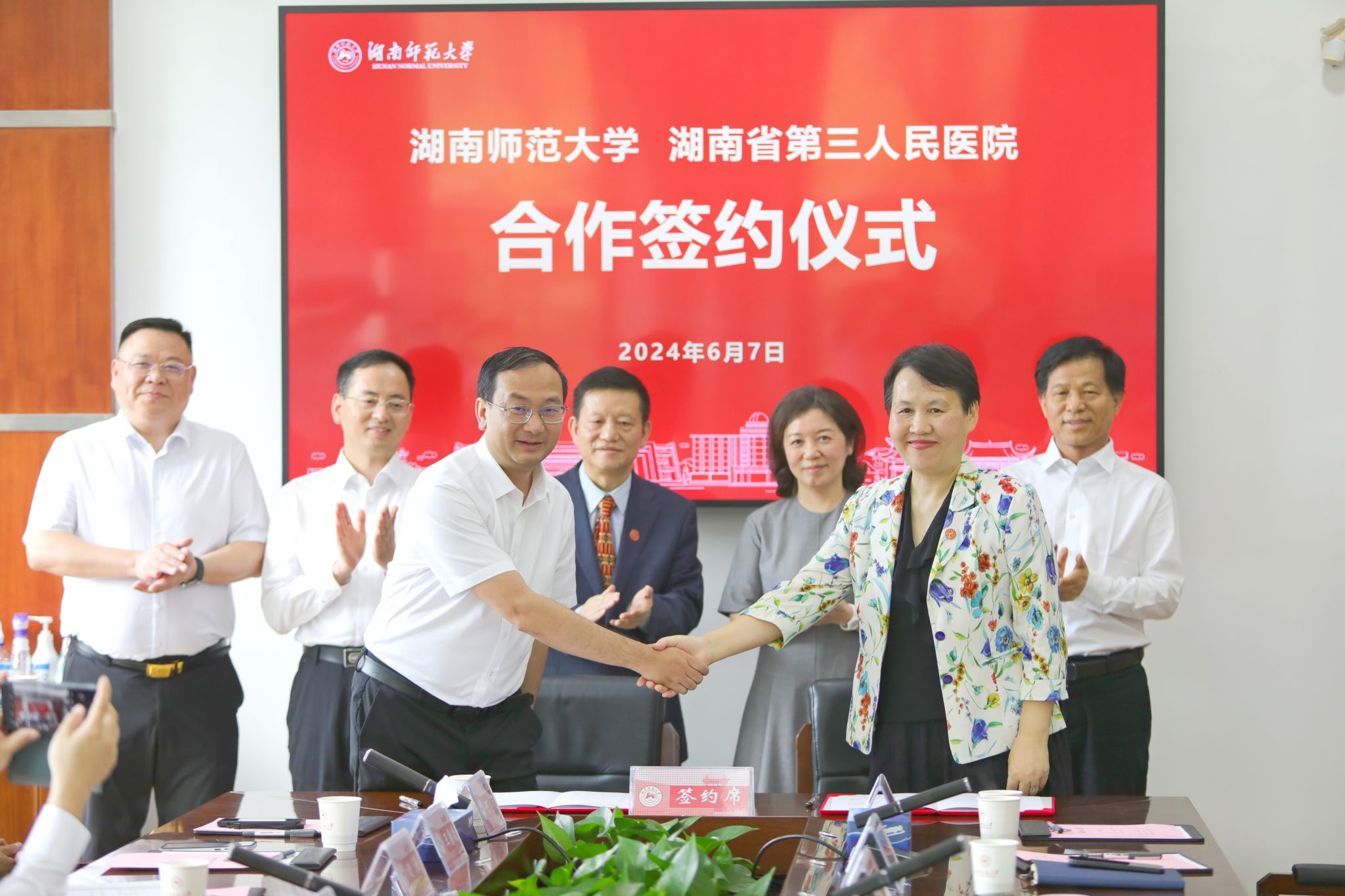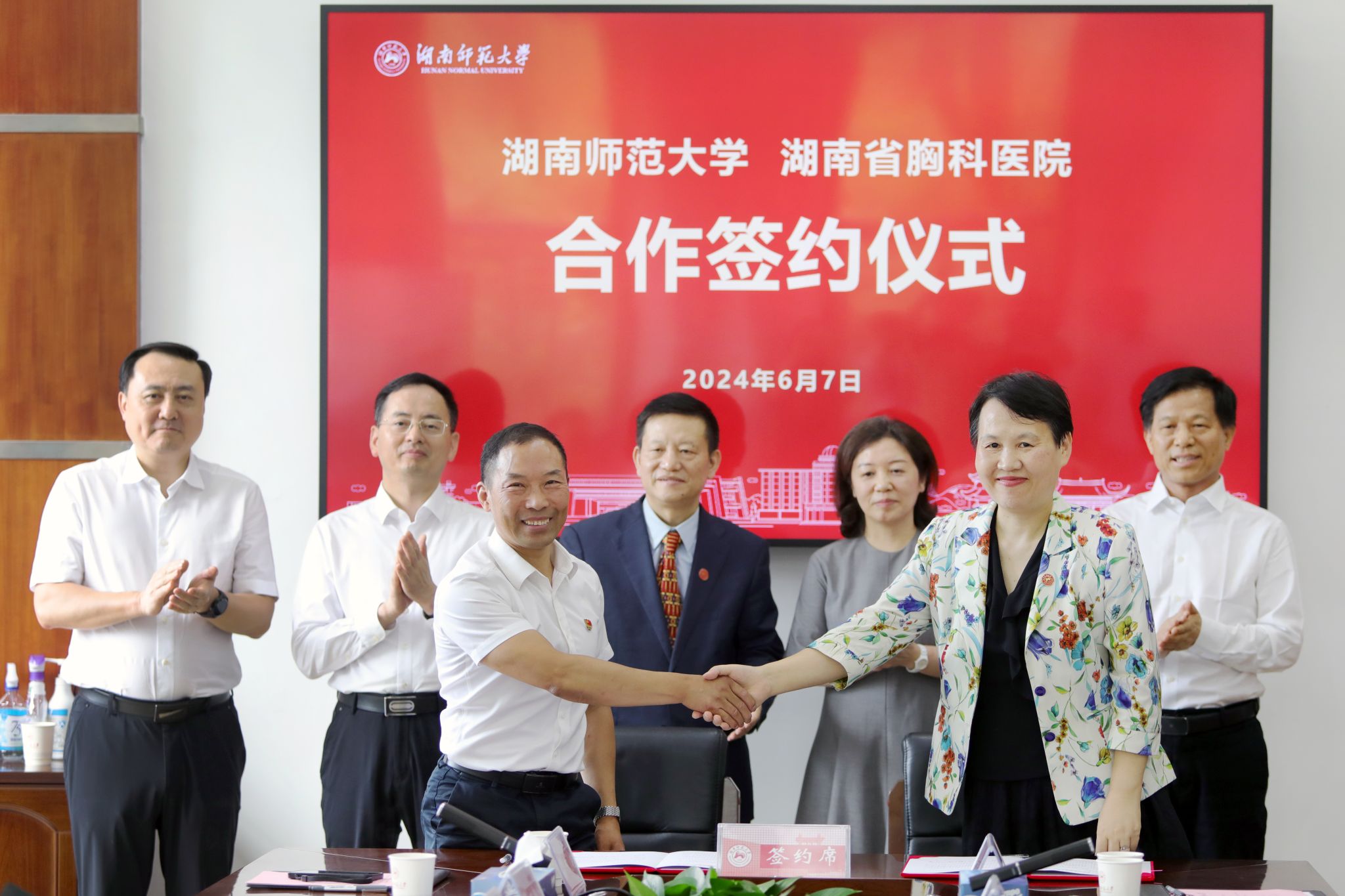(記者 陳麗榮 馬鐵泉 黃依依)6月7日,我校與湖南省胸科醫(yī)院、湖南省第三人民醫(yī)院合作簽約儀式舉行。湖南省衛(wèi)生健康委員會(huì)副主任易露茜、劉平安,校黨委書(shū)記、歐洲科學(xué)院院士蔣洪新,副校長(zhǎng)謝資清出席簽約儀式。儀式由副校長(zhǎng)劉懷德主持。