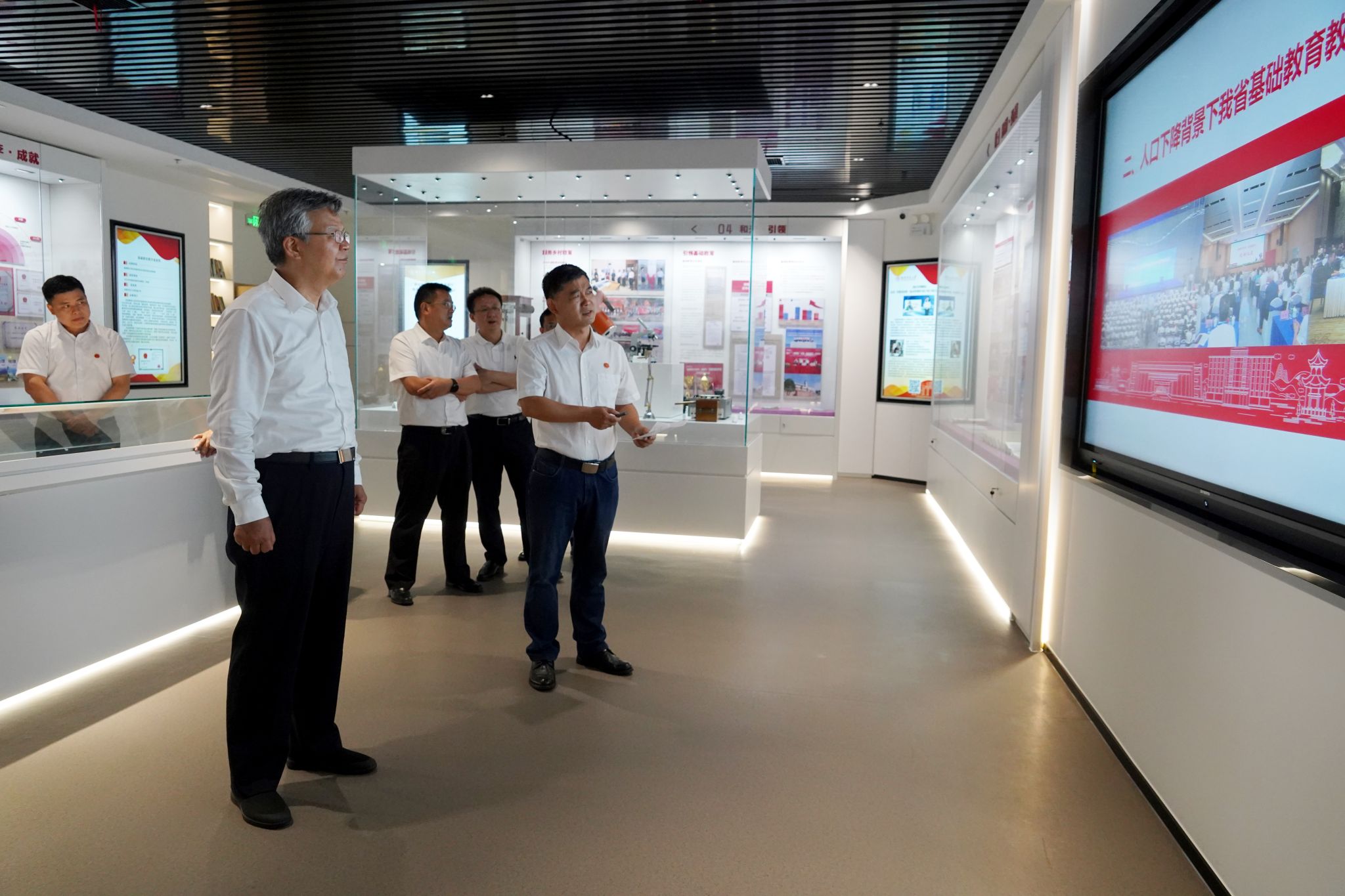 李殿勛一行聽取了劉仲華對我校近年來辦學取得的成績、學科專業建設的基本情況等方面的匯報,參觀了圖書館、教師教育學院展館,了解我校學科專業設置優化、師范教育資源優化整合情況。