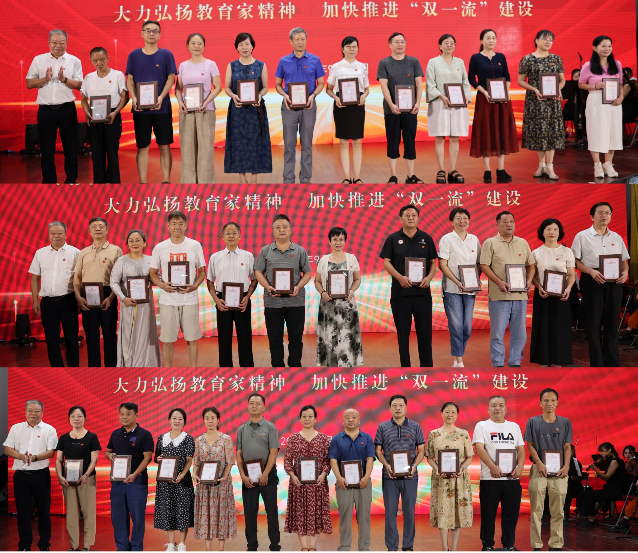 蔣洪新向全體教職工致以節日的問候和祝福,并對全體教職員工為學校建設發展做出的貢獻表示感謝。他強調,人才是富國之本、興邦大計。建校以來,我校始終踐行“人才強?!崩砟?,成就了立學興校、人才輩出的光輝歲月。他表示,只有一流的教師才能培養一流的學生,才能成就一流的大學。近年來,學校深入實施兩個“人才計劃”,推動學校事業邁入了最快最好的發展時期,成為近年來國內發展進步最快大學之一。他強調,要貫徹落實習近平總書記在全國教育大會上的重要講話精神,大力弘揚和傳承教育家精神,一是要堅定心有大我、至誠報國的理想信念;二是要陶冶言為士則、行為世范的道德情操;三是要秉持勤學篤行、求是創新的躬耕態度;四是要弘揚尊師愛師、重教興教的良好風尚,為建成教育強國戰略目標貢獻更大力量。