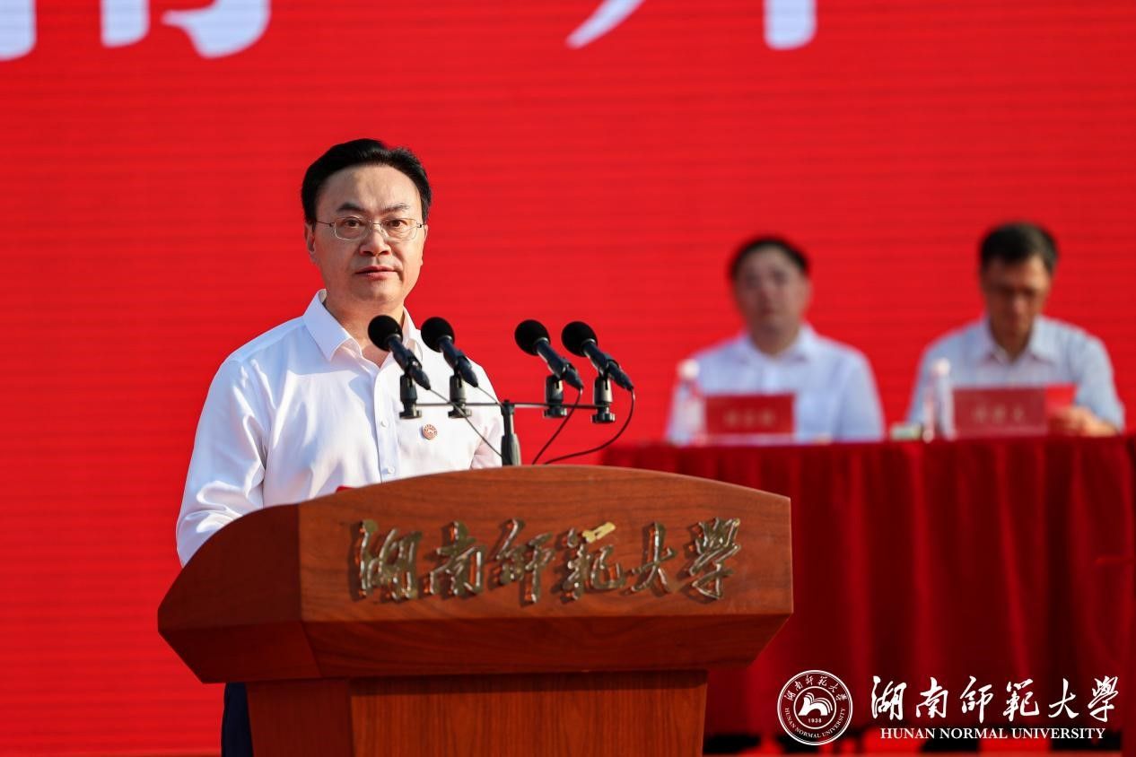 校長、中共第二十屆中央候補委員、中國工程院院士劉仲華致辭,并作“大學第一課”專題報告。他代表學校向2024級全體新生的到來表示歡迎和祝賀。他簡要介紹了學校歷史沿革和人才培養成果,并指出,學校有著人才培養的優良傳統和豐沃土壤,同學們乘勢而上,大有可為。他對全體新生提出殷切期望:一是樹立遠大理想,答好人生航向的選擇題。聚焦國家之需、社會之需、人民之需,將個人的發展融入國家和時代的發展洪流之中;二是磨礪專業技能,答好素質提升的填空題。緊扣時代脈搏,夯實專業基礎,全方位提高綜合素養,以奮進的青春推進中國式現代化建設;三是錘煉堅韌品性,答好面挫躍阻的加分題。以“自找苦吃”的精神不斷磨煉自己的志氣、骨氣、底氣,以奮勇爭先之姿迎接勝利之光;四是修煉健康身心,答好美好生活的基礎題。培養樂觀向上的心態和生活情趣,用健康的體魄和強大的內心擁抱豐富多彩的大學生活。同學們是時代潮流的見證者、參與者和創造者,大家要接過時代的接力棒,秉承“仁愛精勤”的校訓精神,肩負歷史使命、堅定前進信心,勇奪自己的人生冠軍。