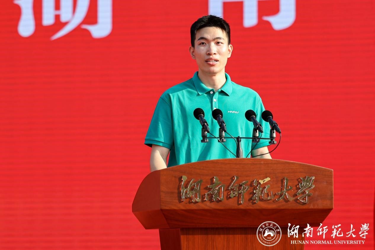 馬克思主義學院2024級碩士研究生段厚宇、世承書院2024級本科生李想作為新生代表發言。他們表示,大學是學習的殿堂,也是實踐的舞臺,要勇攀科研高峰,把論文寫在祖國大地上;用奮斗擦亮青春底色,勤學不輟,不負學校和恩師厚望,用實際行動詮釋師大人的風采與擔當。