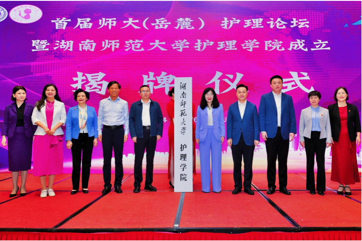 (供稿 護理學院)11月15日,我校護理學院成立揭牌儀式暨師大首屆(岳麓)護理論壇暨湖南省護理學會第十屆理事會慢病管理、全科護理、護理美學、護理倫理、門診專業委員會成立開幕式在長沙舉行。教育部高等學校護理學類專業教學指導委員會秘書長孫宏玉、湖南省衛生健康委副主任程博、湖南省護理學會常務副理事長曾清、湖南省人民醫院黨委書記趙衛華、常德職院院長周華、我校校長劉仲華出席活動。大會由湖南省人民醫院副院長李亞敏主持。