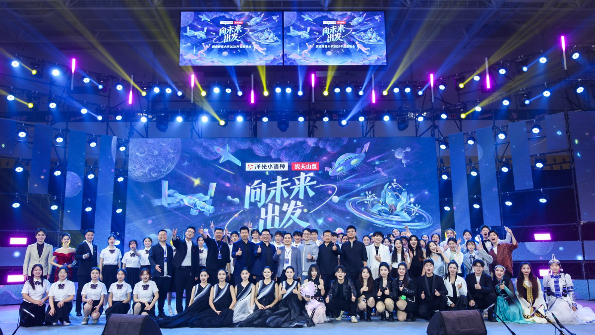 湖南洋光在線教育科技有限公司總經理趙振、全國市場總監盛洋華、全國教學部經理唐小玲,農夫山泉股份有限公司湘北大區岳麓辦經理巫江龍、岳麓區經銷商曾建樹,我校校友企業家聯盟相關領導嘉賓,學校相關職能部門負責人及2024級新生代表參加活動,5.2萬余名觀眾通過圖片直播形式線上觀看晚會盛況。