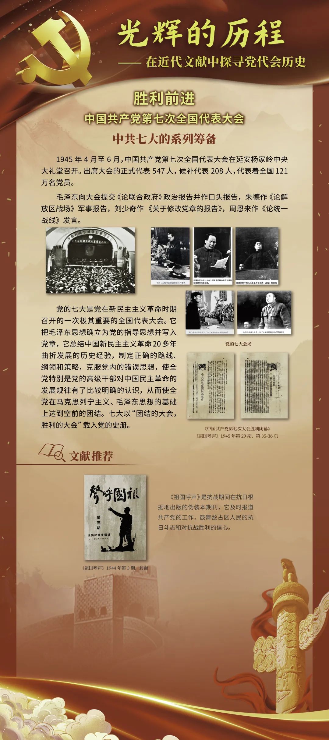 為迎接黨的二十大勝利召開,圖書館聯(lián)合《全國報刊索引》編輯部共同推出“光輝的歷程——在近代文獻中探尋黨代會歷史”展覽,通過展覽回顧中共一大至七大的光輝歷程,在近代文獻中探尋和展示黨在新民主主義革命時期的奮斗成就與經(jīng)驗。用歷史映照現(xiàn)實,遠觀未來,在新的征程上更加堅定、更加自覺地牢記初心使命、開創(chuàng)美好未來。