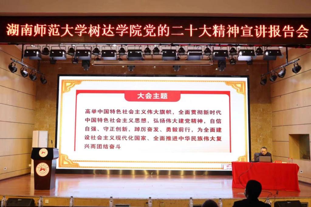 (通訊員 楊洋 湯心儀 王星蘅)11月25日上午,樹達學院召開黨的二十大精神宣講報告會。校黨委講師團成員、法學院院長肖北庚教授擔任主講人,報告會由院長周玉波主持。